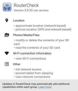 As part of our efforts to be open with our users, we want to explain why RouterCheck requests specific Android permissions. Android requires apps to ask users for their permission to access certain sensitive information and actions so that they can run. This occurs when the app is installed.