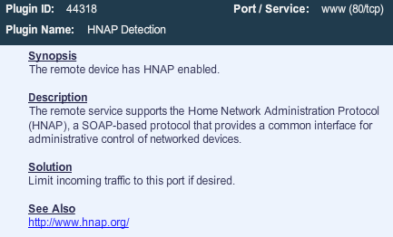 There’s a good article on home router security that’s worth taking a look at. It’s a bit of a survey and contains information about some of the current hot topics: The Linksys Moon worm HNAP issues UPnP issues CSRF problems Polish cybercrimes
